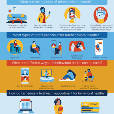 Getting started with telebehavioral health is simple. Patients can schedule appointments through their provider’s patient portal, call their provider’s office directly, search through their health insurance network, or visit Telehealth.HHS.gov for additional resources.